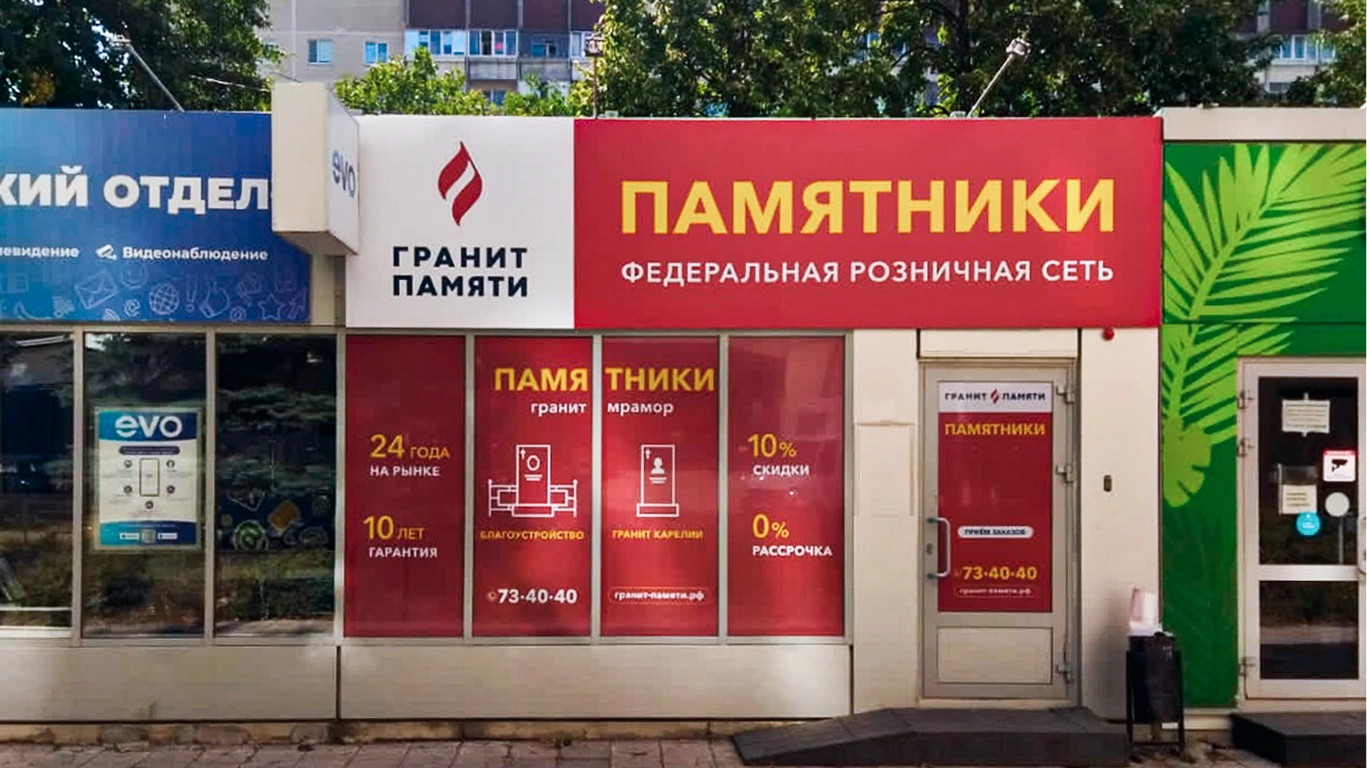 Активно развиваем франчайзинговую сеть, расширяя присутствие по всей стране. Франчайзи получают полную техническую и маркетинговую поддержку: ежемесячный анализ трафика, контроль работы менеджеров и подробные отчёты. Наш отдел франчайзинга ведёт переговоры с новыми партнёрами, готовит города к запуску и представляет компанию на профильных выставках. Помимо этого, мы предлагаем оптовые поставки натурального гранита из Карелии. В ассортименте — не только стандартные комплекты, но и услуги по индивидуальной резке, ретуши и гравировке портретов.